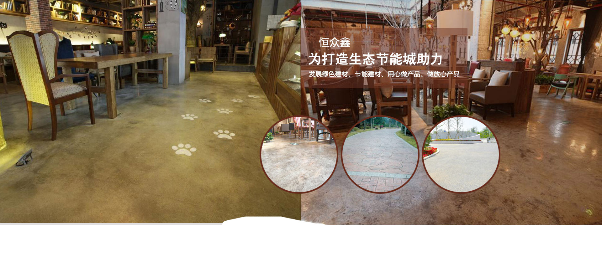 公司主要工程項目有彩色生態(tài)混凝土透水地坪,彩色復古地坪,藝術壓花地坪,混凝土密封固化劑地坪,環(huán)氧砂漿地坪,環(huán)氧防靜電地坪,環(huán)氧防滑紋理地坪,環(huán)氧玻璃鋼地坪,金剛砂耐磨地坪,水泥基彩色地坪,舊地面的修補,空鼓的治理等。